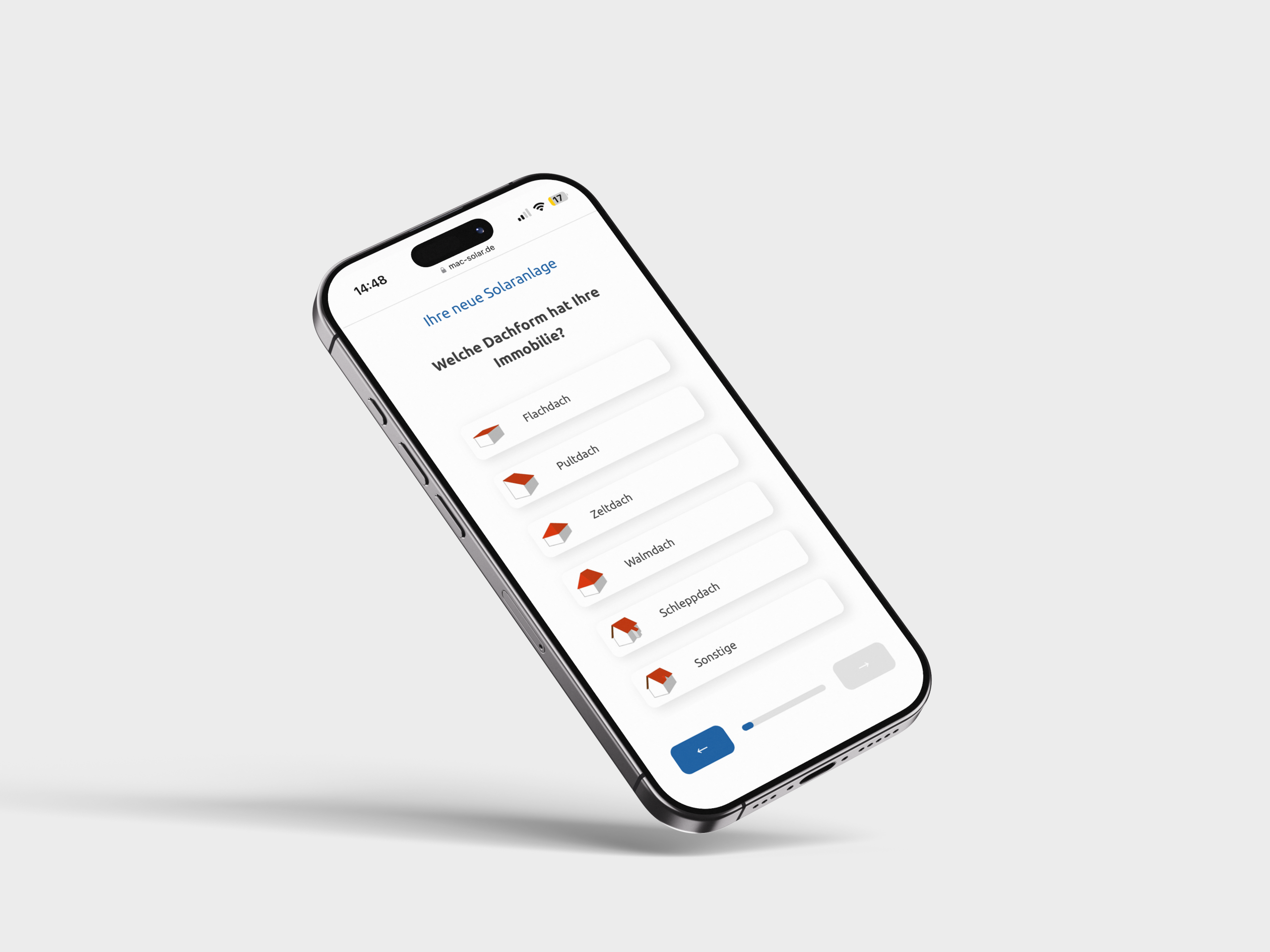 Für die Mac Solar GmbH entstand eine moderne Website mit klarer Struktur und nutzerfreundlichem Design. Herzstück ist das mehrstufige Anfrageformular, das Interessierte Schritt für Schritt – von der Dachgröße bis zur gewünschten Wallbox – durch den Prozess führt. Zur besseren Orientierung wurden eigene Icons entwickelt und gezeichnet, die jeden Abschnitt visuell unterstützen.